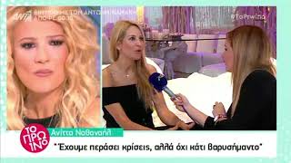 Η ξανθιά παρουσιάστρια ξενάγησε τη δημοσιογράφο της εκπομπής Ελένη Μουστάκη στις αγαπημένες τις γωνιές ενώ μίλησε και για τις όμορφες στιγμές που περνά σε αυτό με την οικογένειά της. Η ΑΝΝΙΤΑ ΝΑΘΑΝΑΗΛ ΚΑΙ Ο ΣΥΖΥΓΟΣ ΤΗΣ ΚΡΙΣ ΧΑΜΠΕΡΤ ΑΝΟΙΞΑΝ ΤΟ ΣΠΙΤΙ ΤΟΥΣ ΚΑΙ ΜΙΛΗΣΑΝ ΣΤΗΝ ΕΚΠΟΜΠΗ ΕΛΕΝΗ ΚΑΙ.
